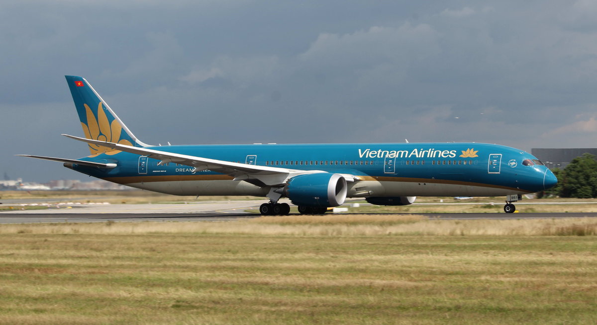 Ein Dreamliner der vietnamesichen Airline VN-A861 bei Start in Frankfurt am 6.8.16