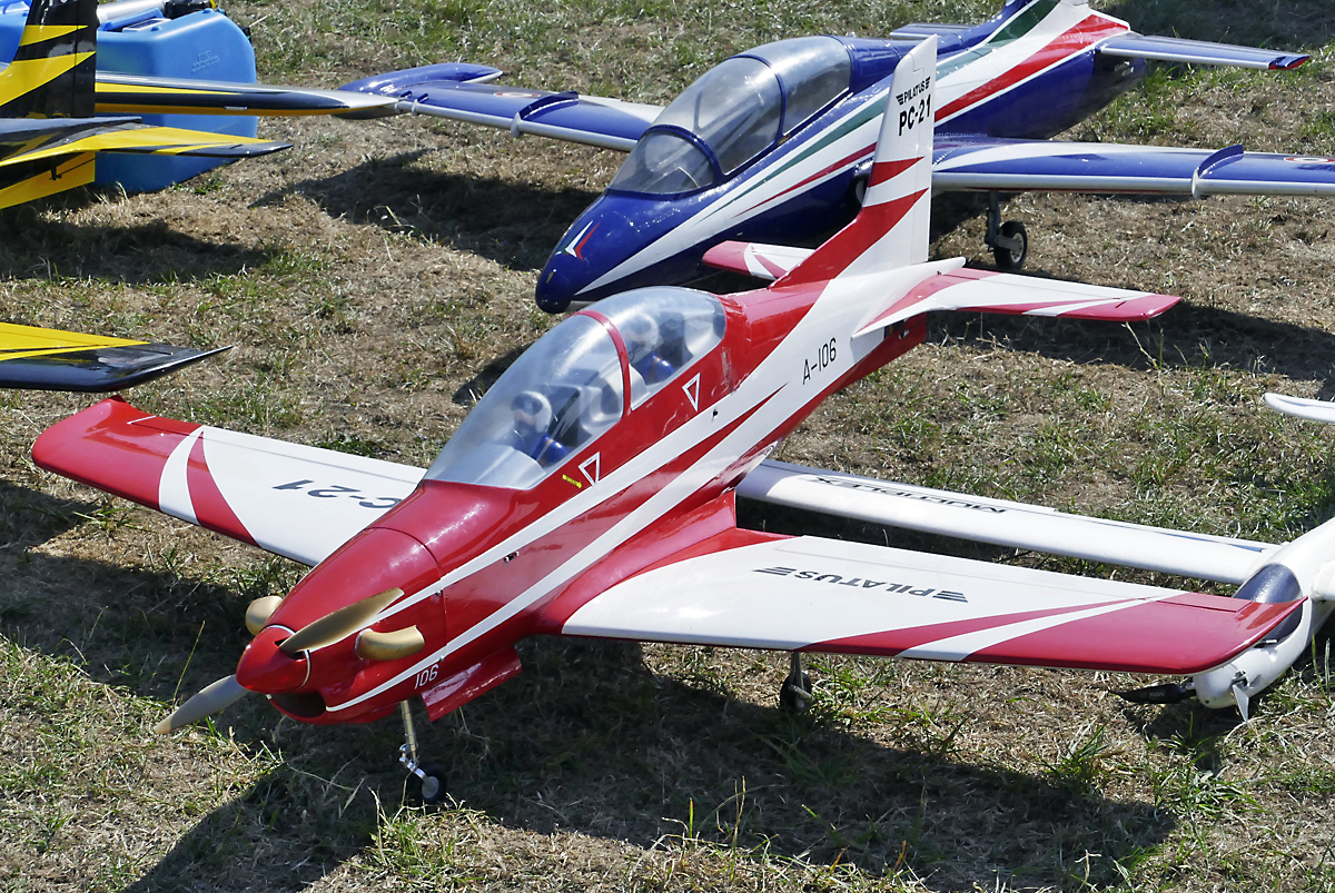 Flugmodell einer Pilatus PC-21 beim Wiesenfest am Flugplatz Müggenhausen - 02.09.2018