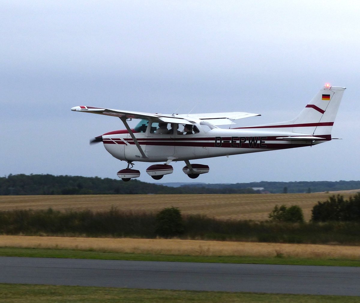 LFDU, Cessna 172 Skyhawk, D-EPWE von Peter Künast bei der Landung in Gera (EDAJ) am 1.9.2018 Wer in Gera einen Rundflug unternehmen möchte ist bei ihm an der richtigen Adresse.