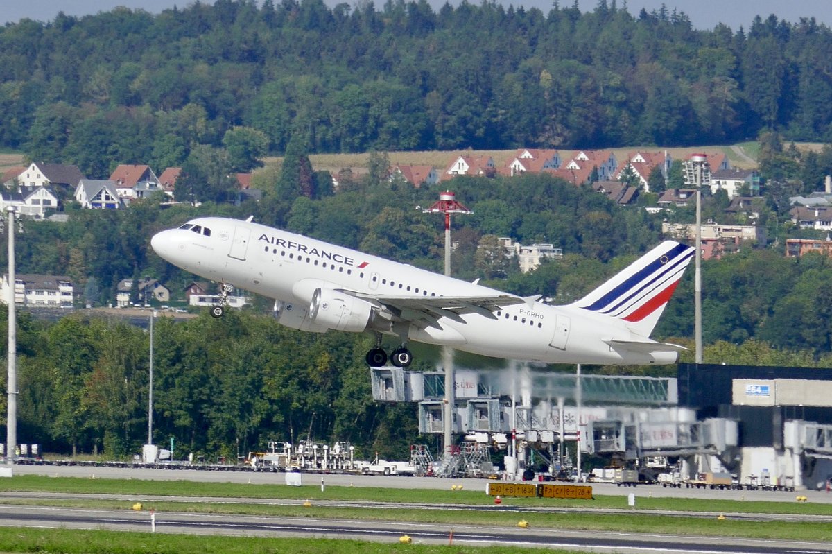 Air France A319-111 F-GRHO beim abheben am 15.9.18 in Zürich.
