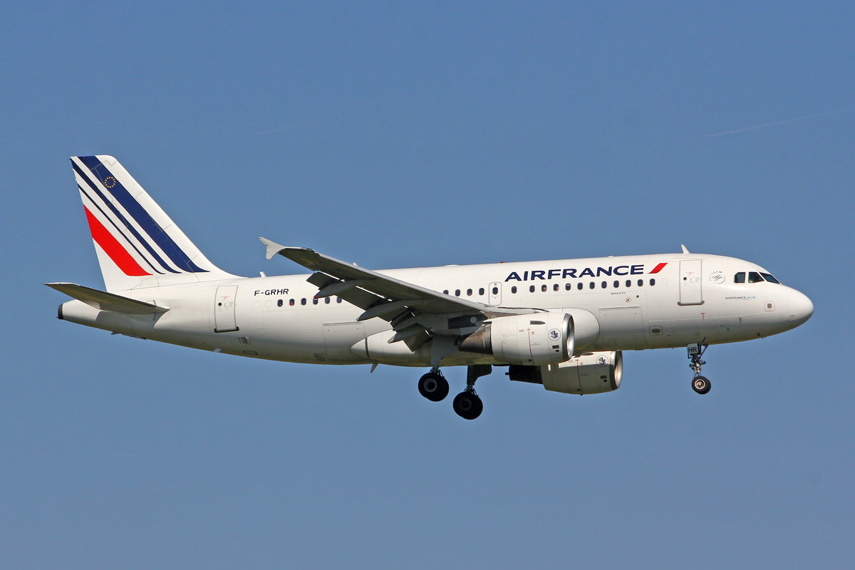 A319-111 F-GRHO der Air France am 15.9.18 nach dem Start in Zürich.