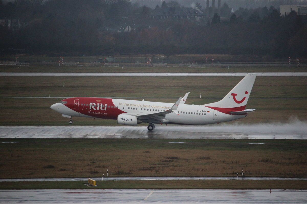 Am 2.12.16 landetet die B737-800 D-ATUZ der Tuifly mit "RIU Hotels & Resorts" Beklebung in Düsseldorf