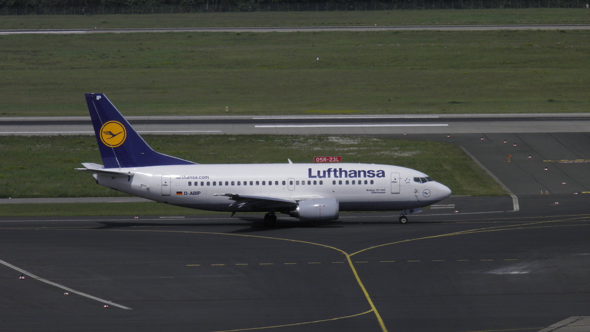 B737-500 D-ABIP mit dem Taufnamen "Oberhausen" beim Rollen zur Startbahn 23L in Düsseldorf am 7.5.2011