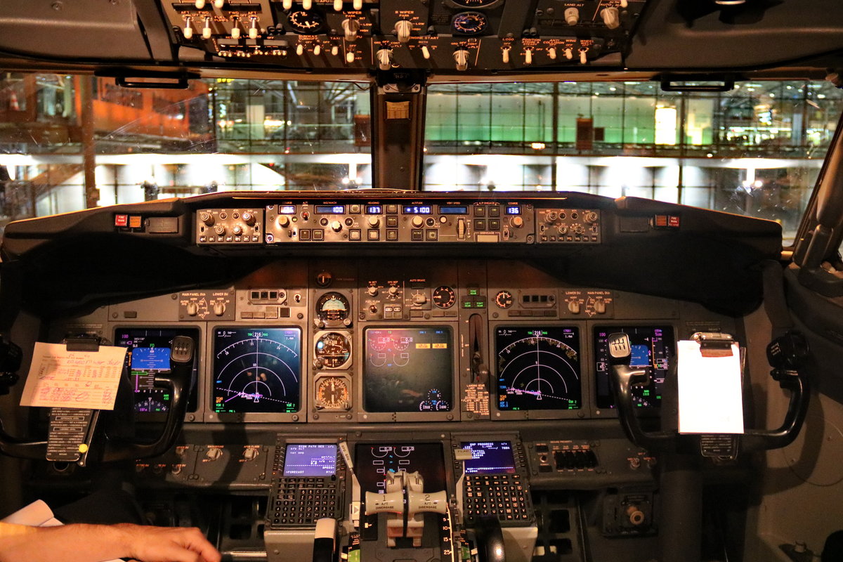 Cockpit einer Boeing 737-800 bei Nacht, vielen Dank hierfür noch einmal an die Besatzung der EI-DWT am 20.9.18