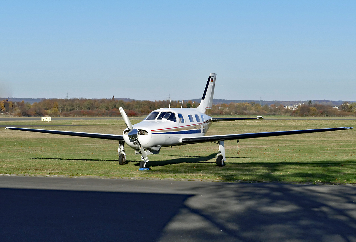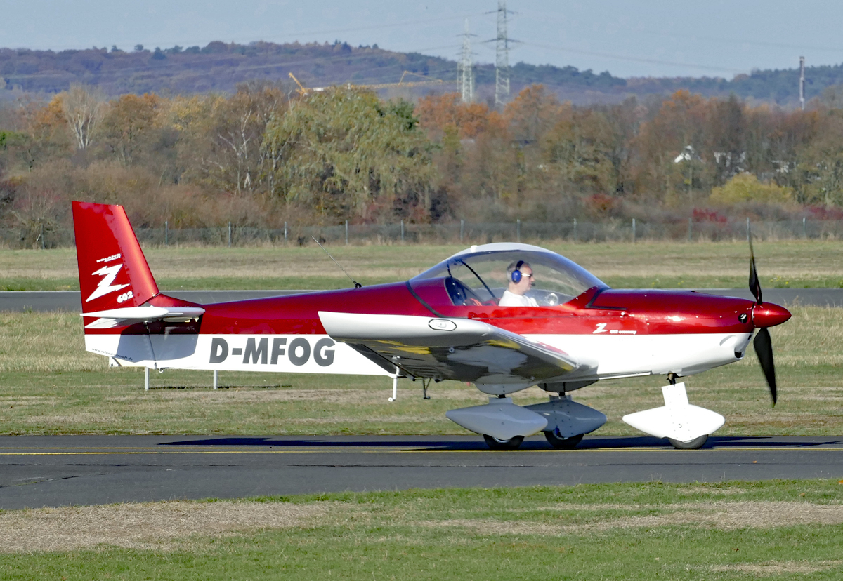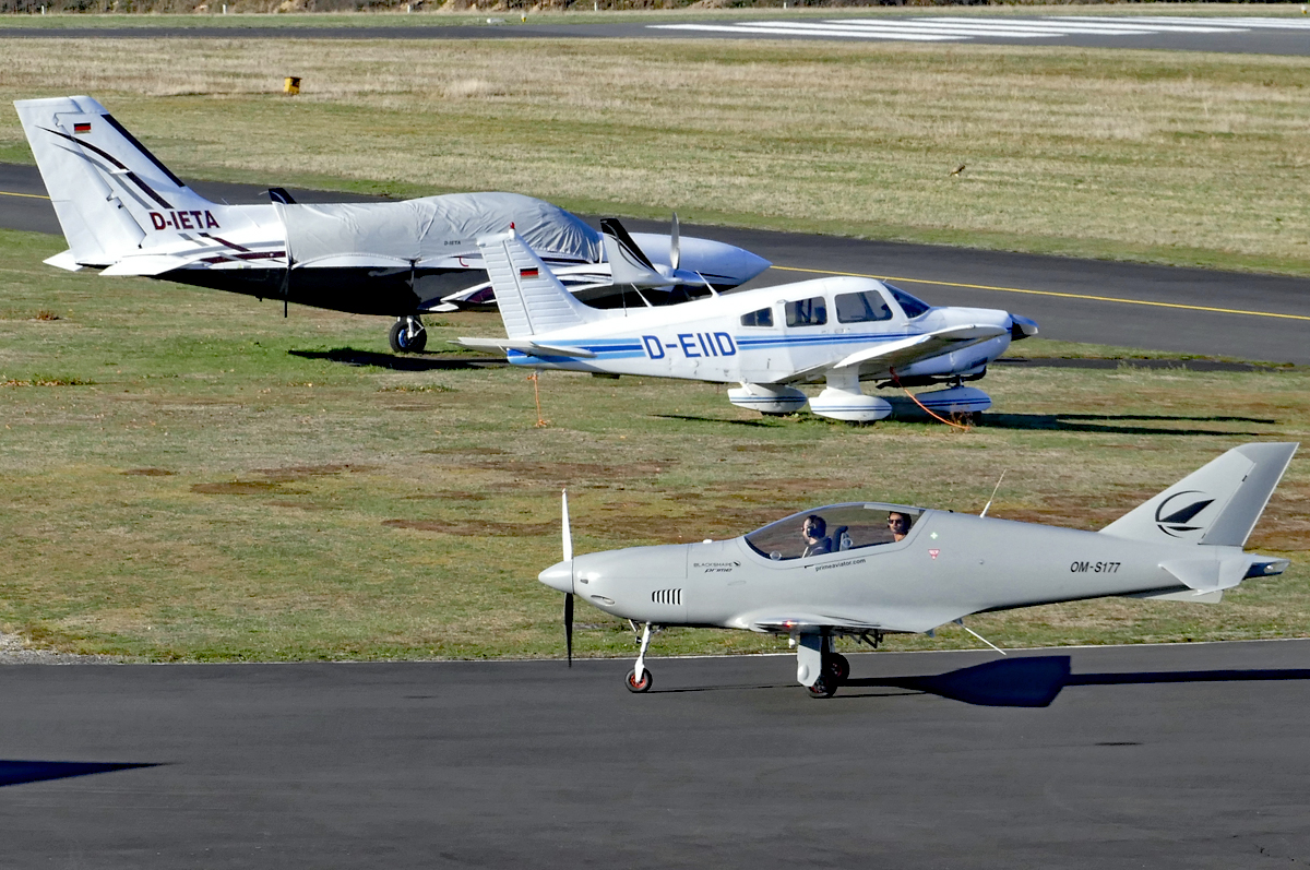 Black Shape Prime, OM-S177 rollt unter der PA 28, D-EIID und einer Cessna 414 A, D-IETA vorbei - Bonn-Hangelar 17.11.2018