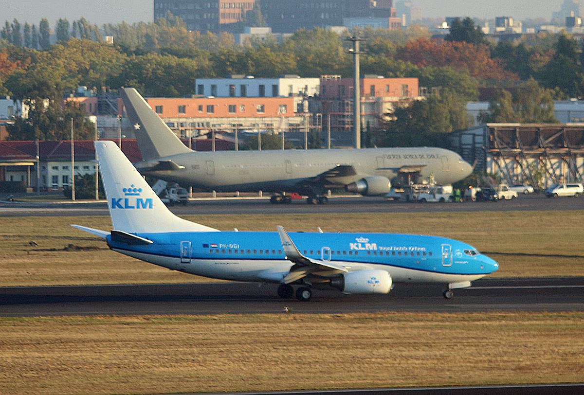 KLM, Boeing B 737-7K2, PH-BGI, Chile Air Force, Boeing B 767-3YO(ER), 985, TXL, 11.10.2018
