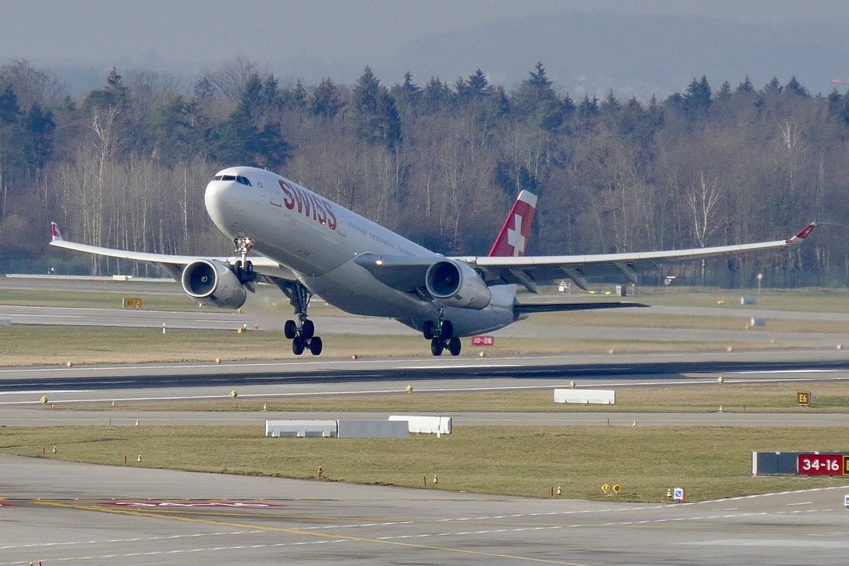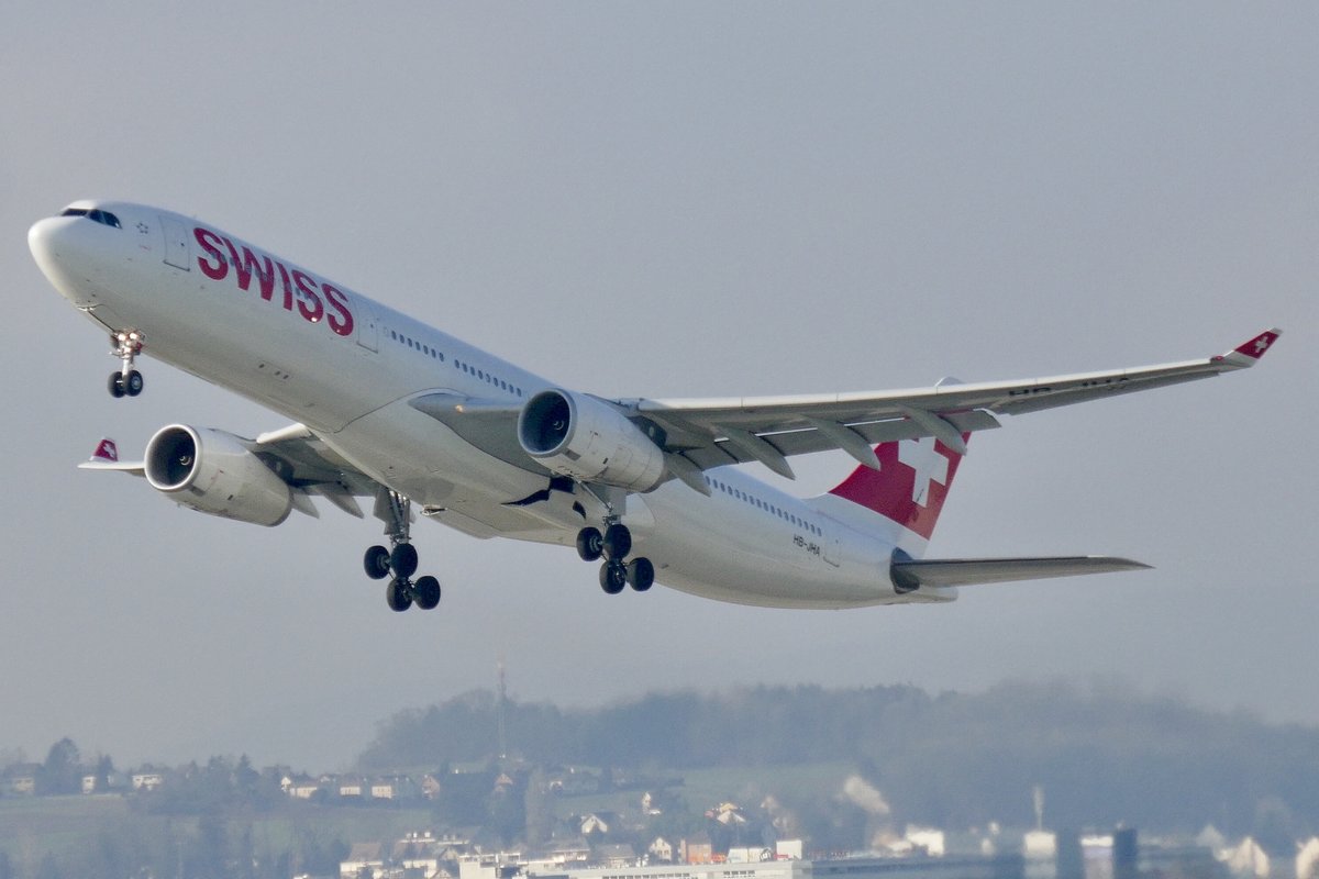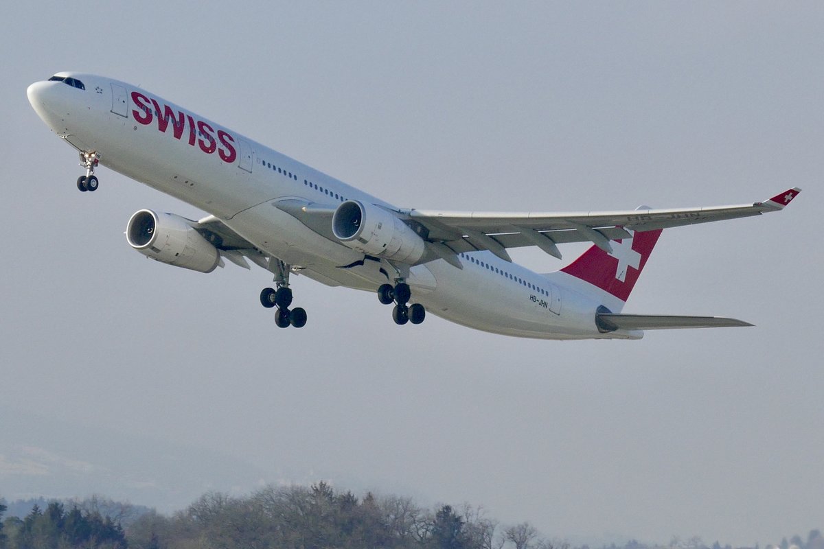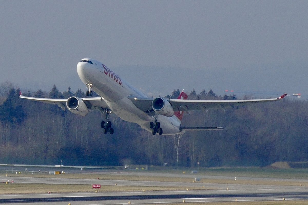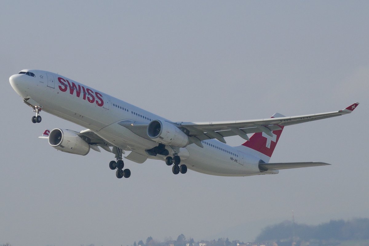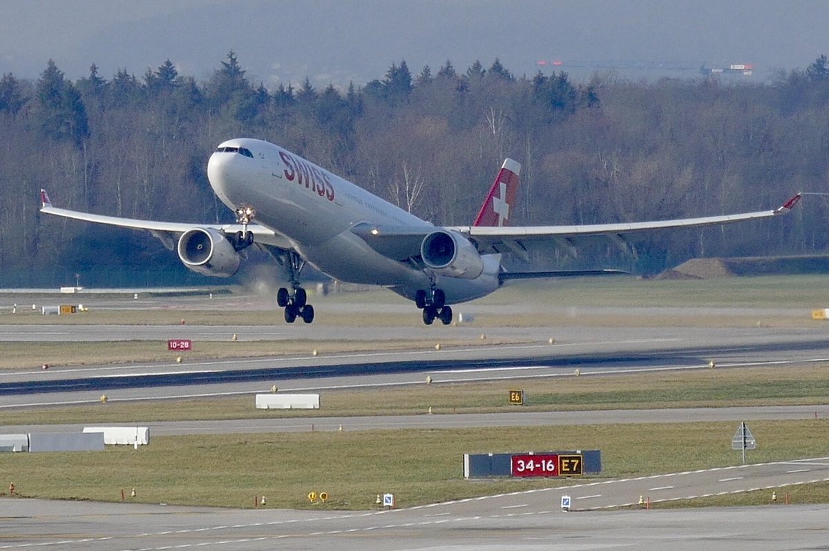 Swiss A330-343 HB-JHJ am 19.1.19 nach dem Start in Zürich.
