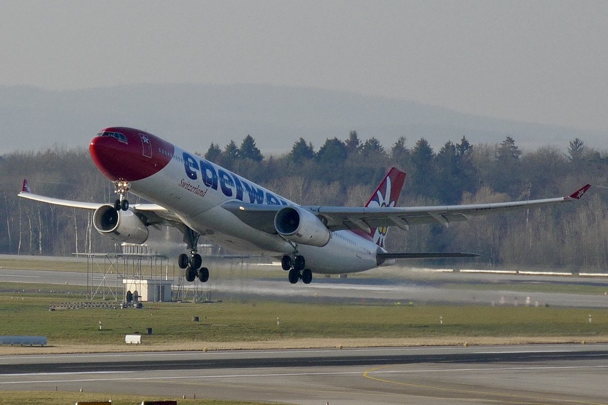 A330-343 HB-JHN am 19.1.19 beim Abheben am Flughafen Zürich.