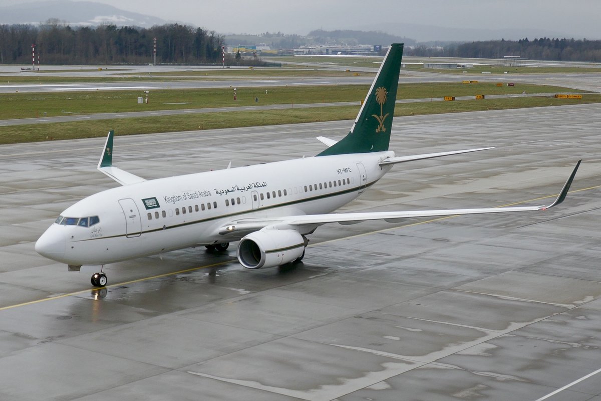 B737-700BBJ HZ-MF2 vom Saudi-Arabischen Staat rollt am 26.1.19 in Zürich zum Standplatz.