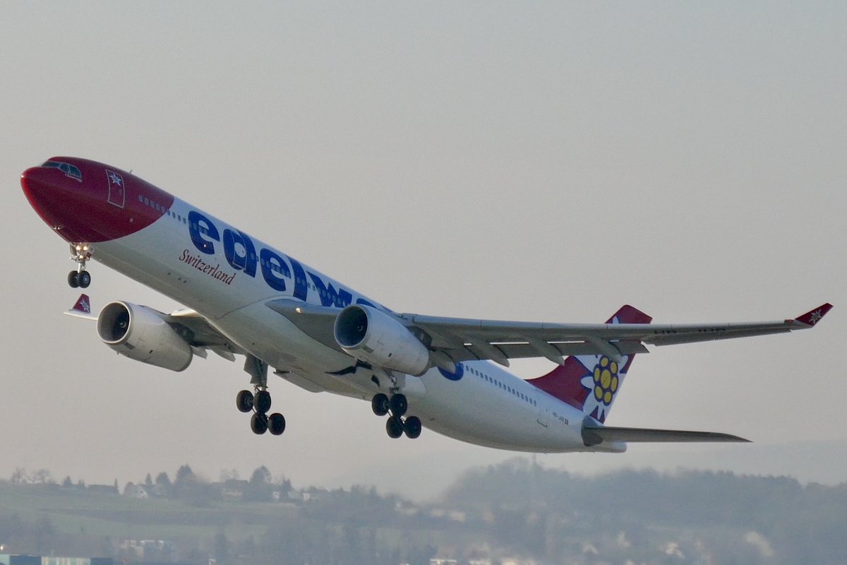 Edelweiss A330-343 HB-JHR "Chäserrugg" am 19.1.19 nach dem Start in Zürich.