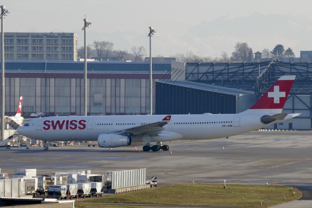 Swiss A330-343 HB-JHM der nach seinem anullierten Flug am 19.1.19 in Zürich da hinten parkiert wurde.