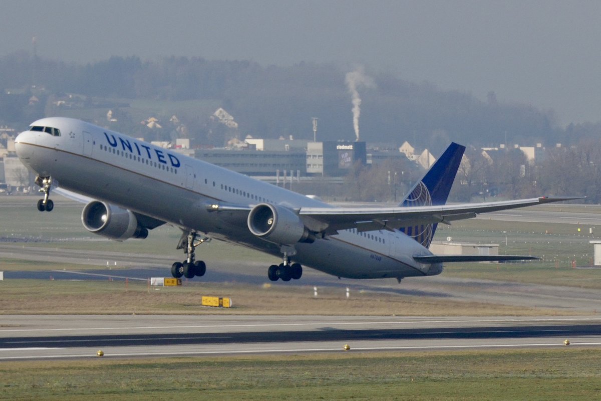 United Airlines B767-424(ER) N67058 beim Abheben am 19.1.19 in Zürich.