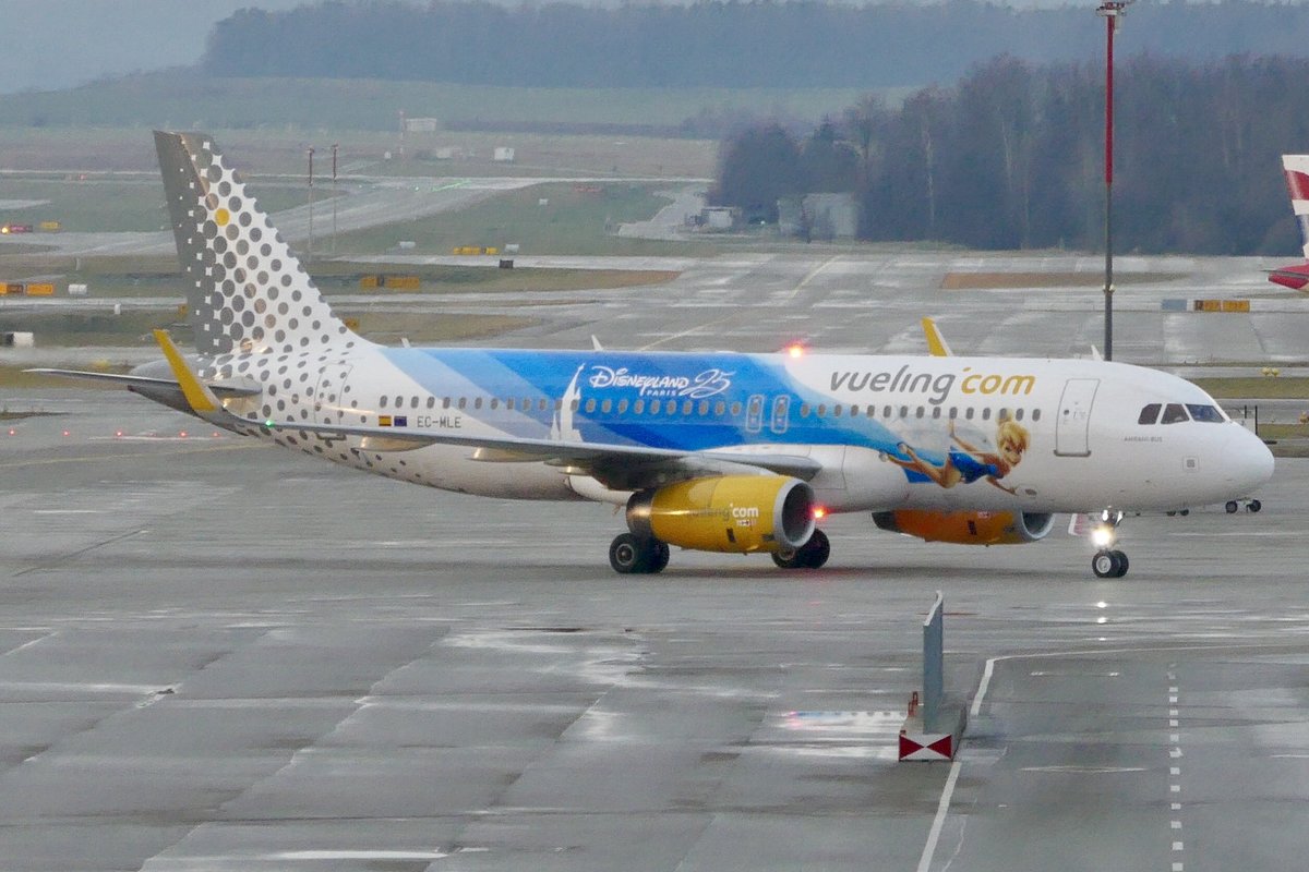 Vueling A320-232 EC-MLE "Amrani-Bus" 25 Jahre Disneyland Livery 26.1.19 in Zürich.