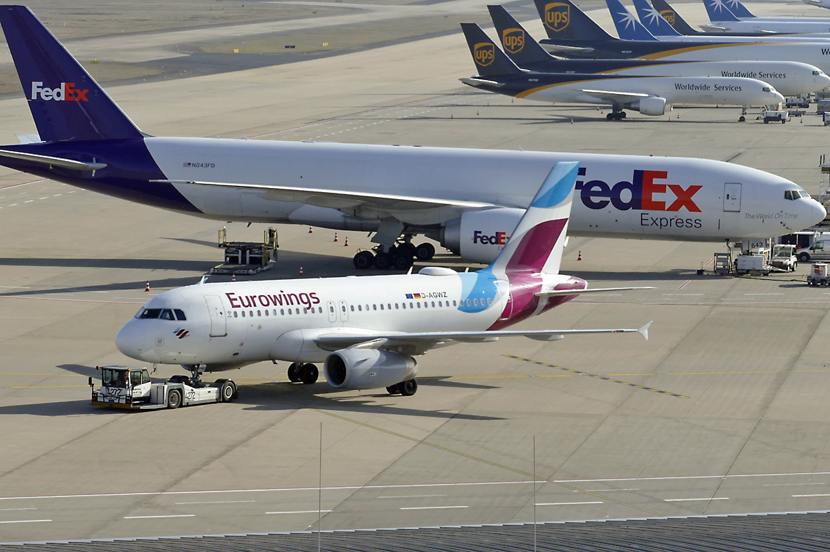 A 319-132 Eurowings D-AGWZ, dahinter eine B 777-FHT von FedEx in CGN - 17.02.2019