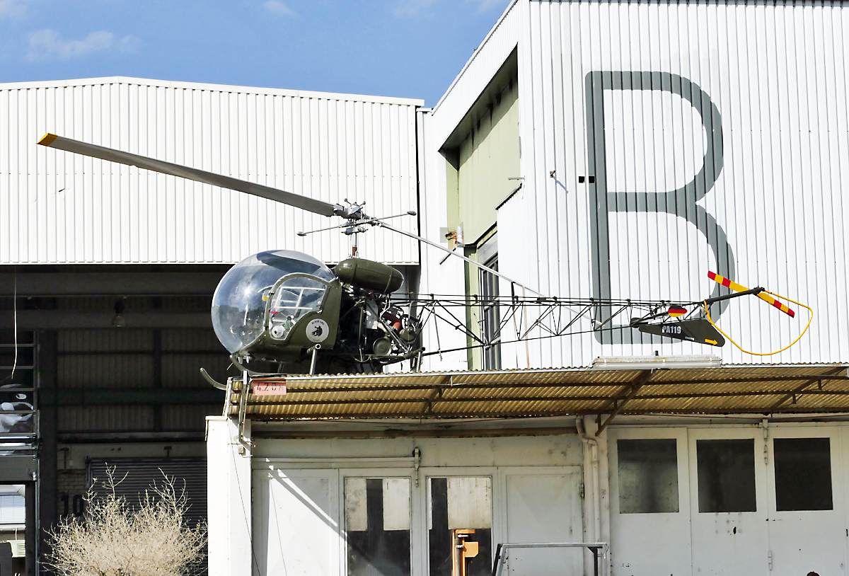 Auf`s Dach gehievte ehemalige Heeresflieger- Bell 47G-2 (PA-119) in Bad Honnef - 30.03.2019