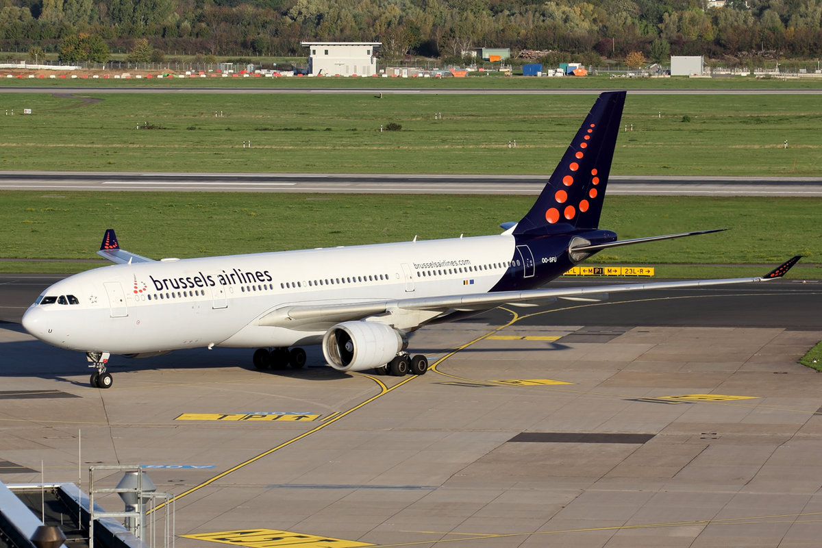 Brussels Airlines Airbus A330-223 OO-SFU rollt zum Gate in Düsseldorf 12.10.2019
