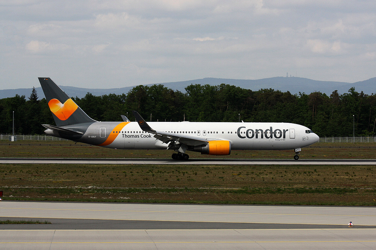D-ABUT Condor Boeing 767-300 bei der Landebahn Nordwest am Frankfurt-Rhein-Main Flughafen am 03.05.2019.