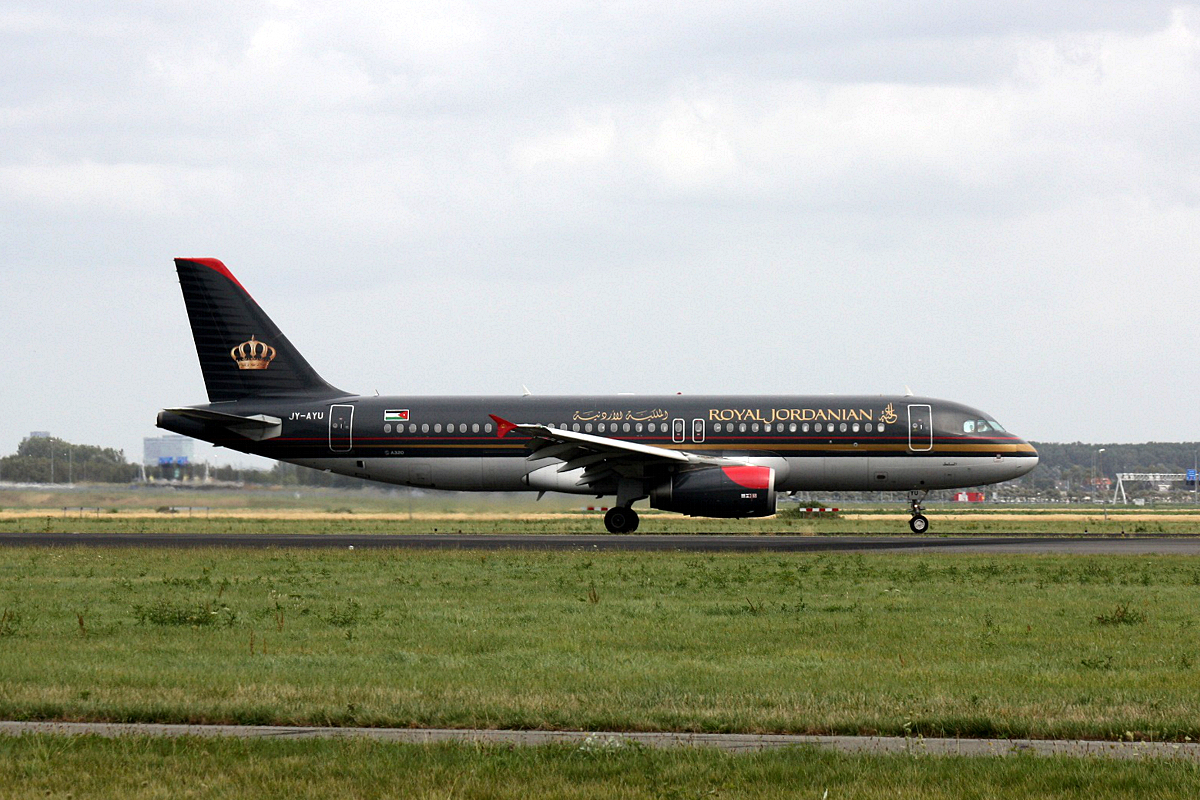 JY-AYU Royal Jordanian Airbus A320-232 am 11.08-2019 bei der Landung in Amsterdam Schiphol.