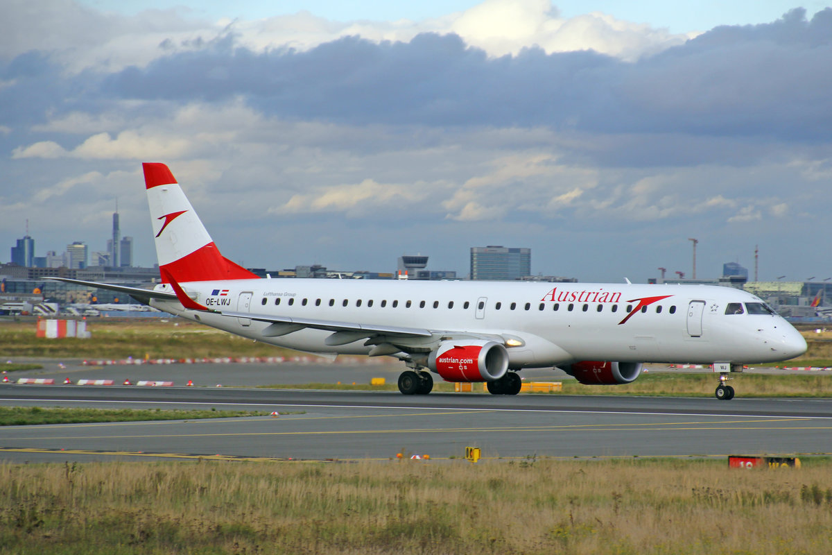 Austrian Airlines, OE-LWJ, Embraer ERJ-195LR, msn: 19000507, 28,September 2019, FRA Frankfurt, Germany.