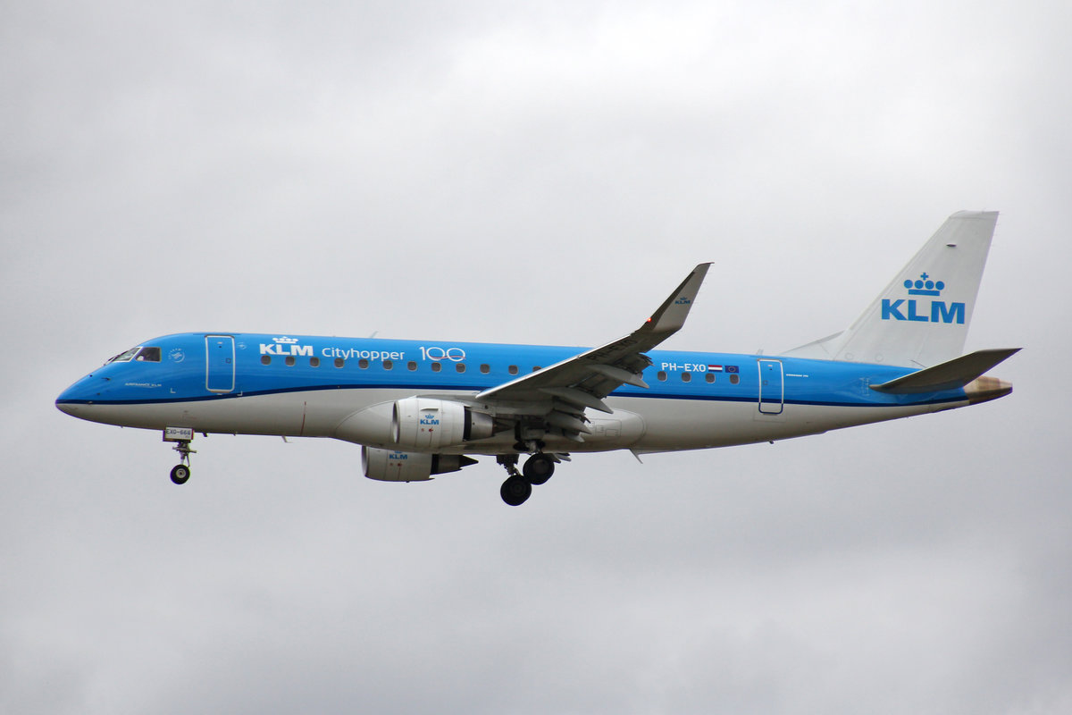 KLM Cityhopper, PH-EXO, Embraer ERJ-175STD, msn: 17000668, "100 Jaar" Sticker, 28,September 2019, FRA Frankfurt, Germany.