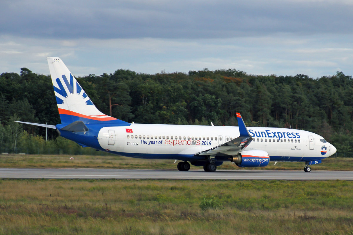 SunExpress, TC-SOR, Boeing 737-8AS, msn: 33563/1473, "Aspendos" Sticker, 28.September 2019, FRA Frankfurt, Germany.