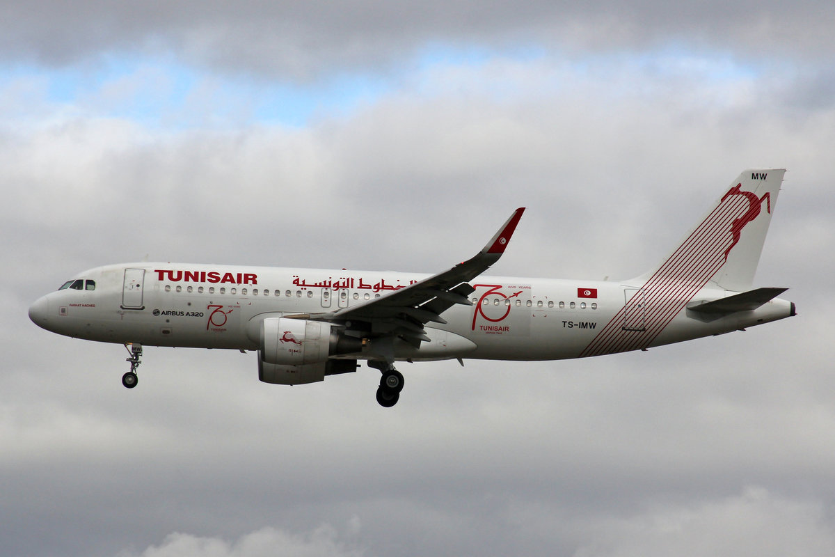 Tunisair, TS-IMW, Airbus A320-214, msn: 6338, "Farhat Hached", "70 Ans Years" Sticker, 28.September 2019, FRA Frankfurt, Germany.