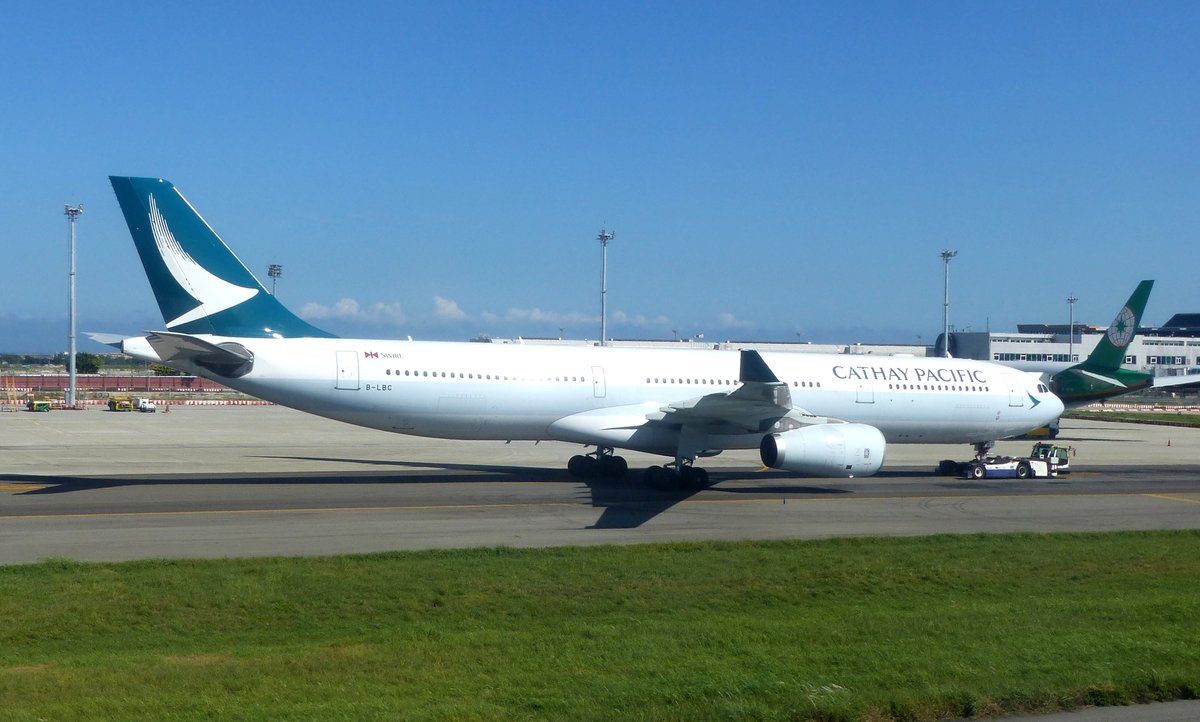 Cathay Pacific, Airbus A 330-343, B-LBC auf dem Taoyuan Taipei International Airport (TPE) am 12.9.2019