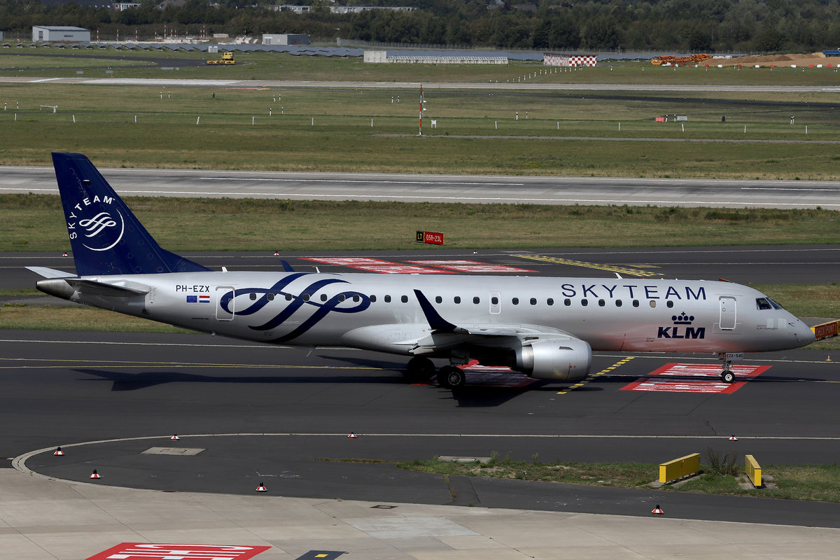 KLM Cityhopper, PH-EZX, Embraer, 190-STD (190-100)~ SkyTeam-Lackierung, DUS-EDDL, Düsseldorf, 21.08.2019, Germany