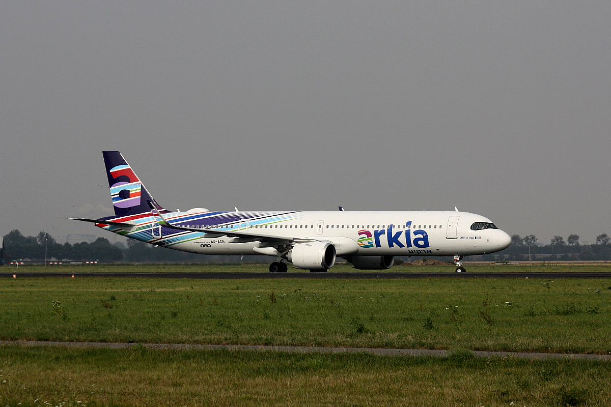4X-AGN Arkia - Israeli Airlines Airbus A321-251NX nach der Landung in Amsterdam Schiphol am 09.08.2019