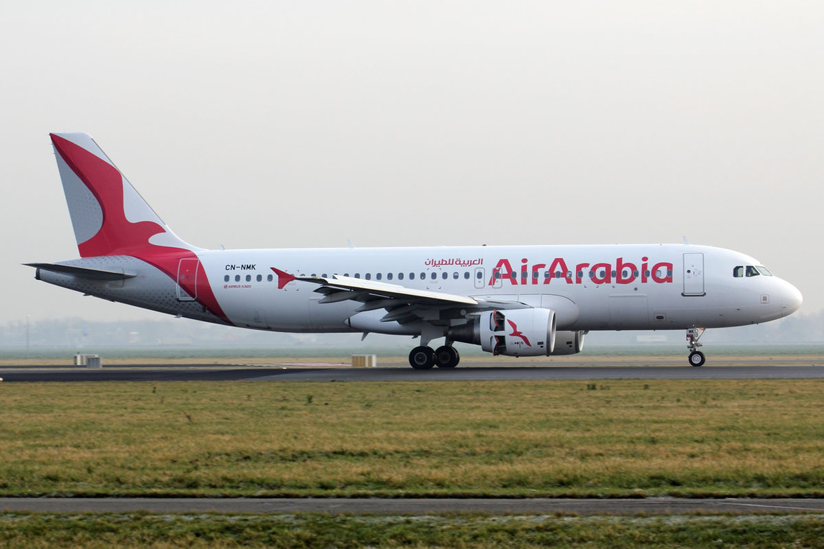 Air Arabia Maroc Airbus A320-214 CN-NMK nach der Landung in Amsterdam 28.12.2019