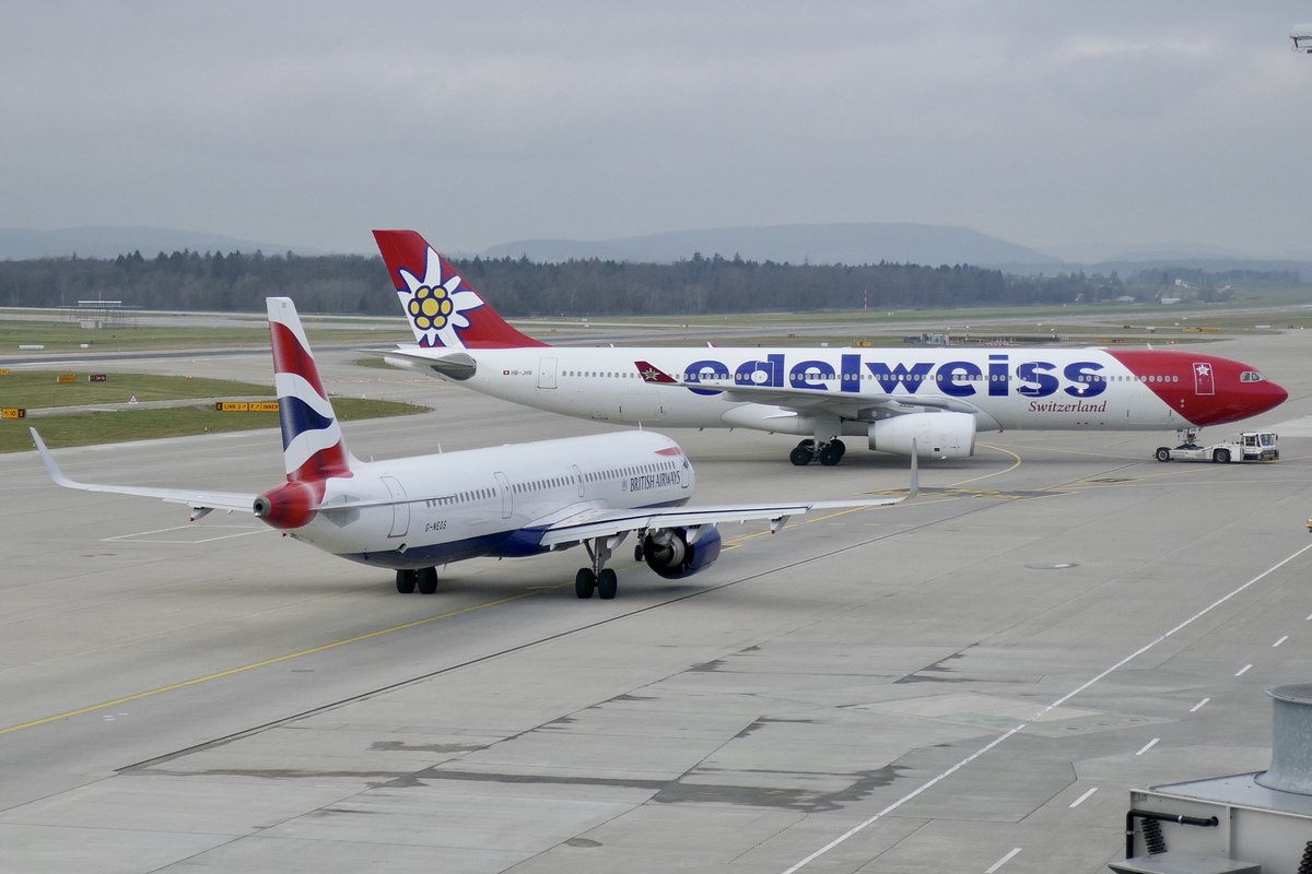Edelweiss, A330-300, HB-JHR, "Chäserrugg" mit dem British Airways, A321-251NX, G-NEOS, 28.12.19, Zürich