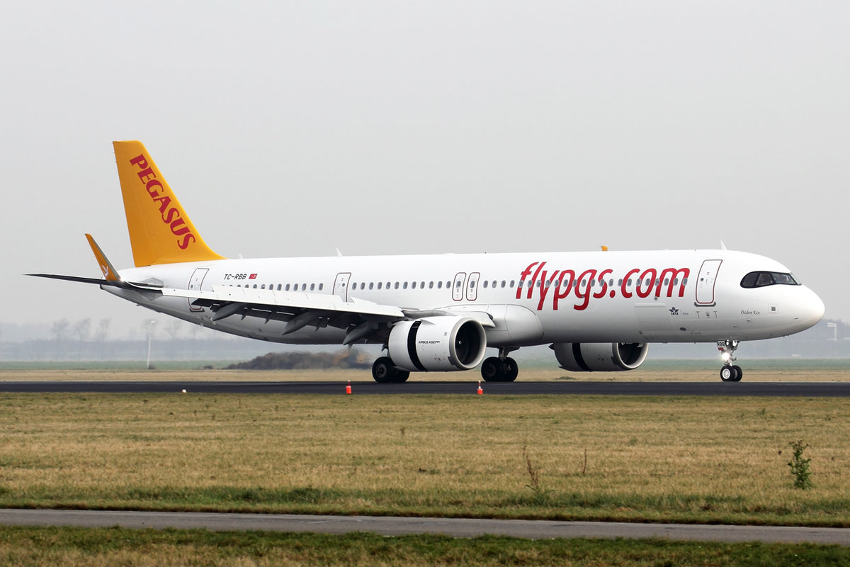 Pegasus Airlines Airbus A321-251NX TC-RBB nach der Landung in Amsterdam 28.12.2019