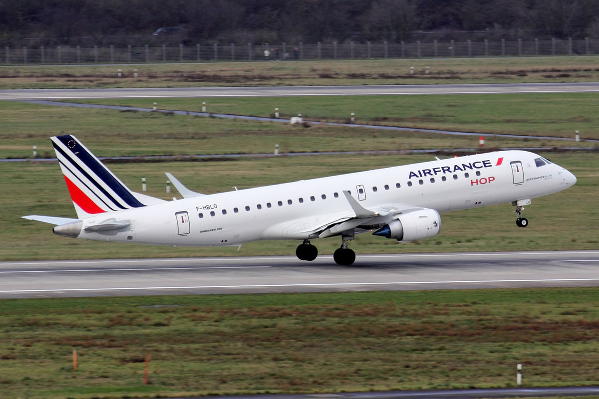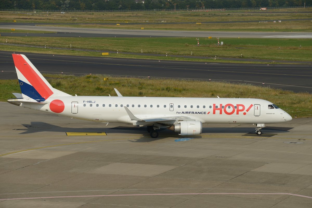 Air France (HOP!) Embraer ERJ-190-100STD F-HBLO beim Start in Düsseldorf 19.1.2020