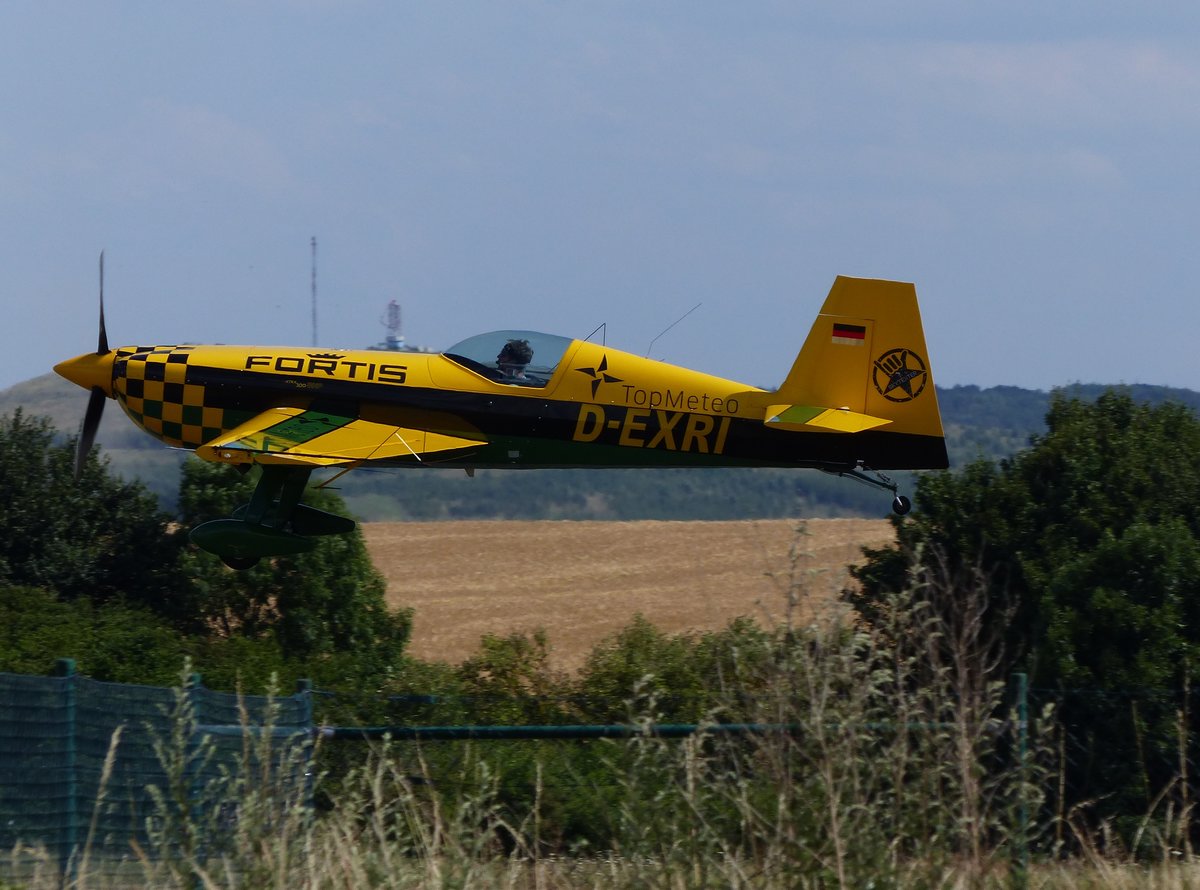 Extra 330 SHP, D-EXRI vor der Landung in Gera (EDAJ) im Rahmen der Deutschen Meisterschaft im im Motorkunstflug am 20.7.2020.
