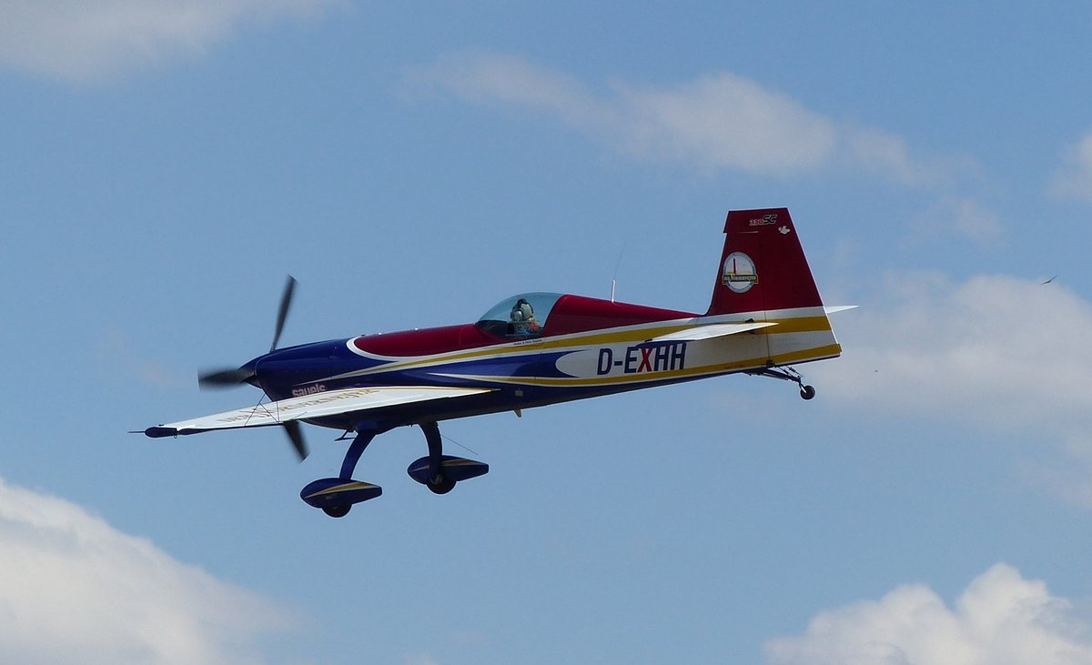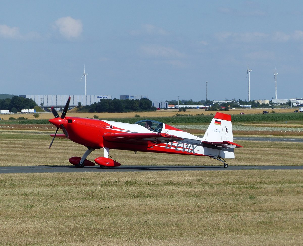 Extra 330 SC, D-EXXZ gestartet zum Wettbewerb der Deutschen Meisterschaft im Motorkunstflug in Gera (EDAJ) am 25.7.2020