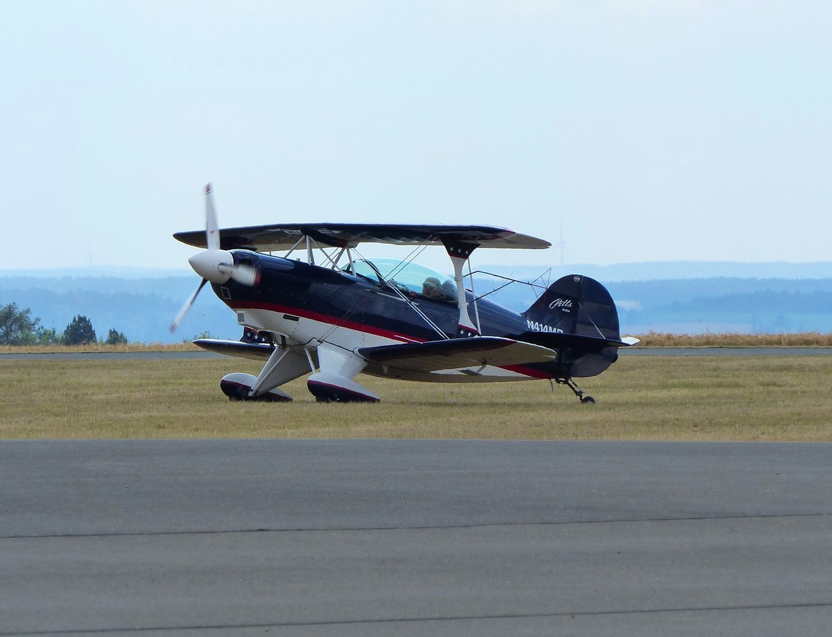 Pitts S-2A, N414MB auf dem Weg zur Parkposition in Gera (EDAJ) am 19.7.2020. Deutsche Meisterschaft im Motorkunstflug
