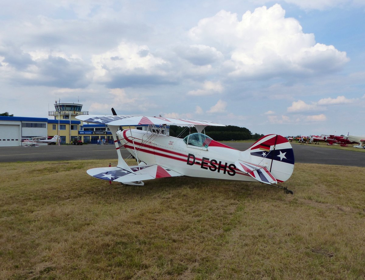 Pitts S-2S, D-ESHS auf dem Vorfeld in Gera (EDAJ) am 20.7.2020. Deutsche Meisterschaft im Motorkunstflug