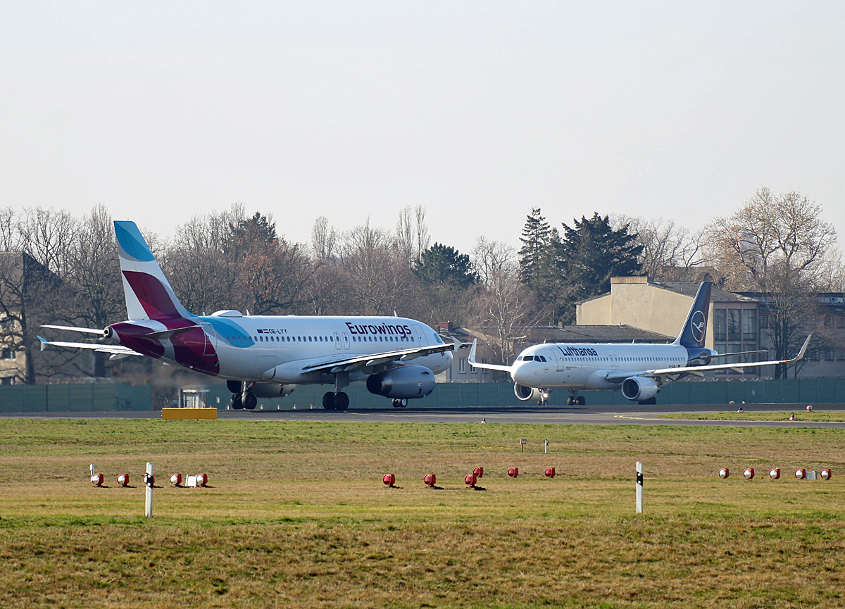 Eurowings Europe, Airbus A 319-132, OE-LYY, Lufthansa, Airbus A 320-214, D-AIWJ "Stralsund", TXL, 05.03.2020