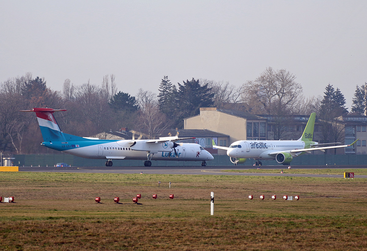 Luxair, DHC-8-402Q, LX-LQJ, Air Baltic, Airbus A 220-300, YL-CSA, TXL, 05.03.2020