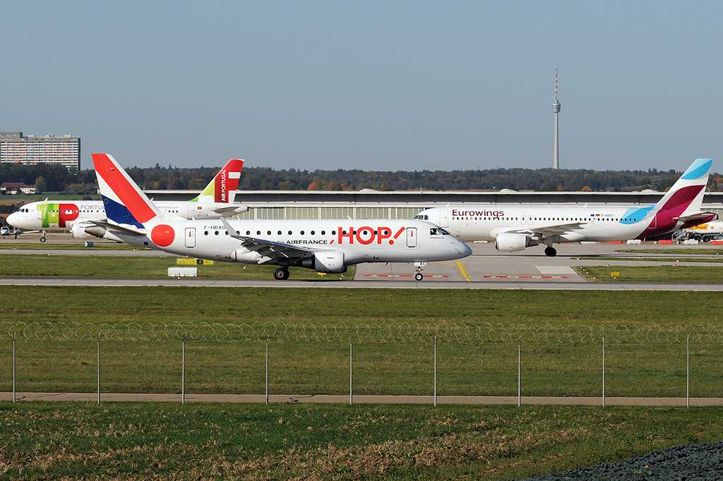 F-HBXG Embraer ERJ-170-100STD 14.10.2019 Im Hintergrund CS-TTG (TAP Air Portugal Airbus A319-111) auf Taxyway November & D-ABDT (Eurowings Airbus A320-214) auf Taxyway Sierra