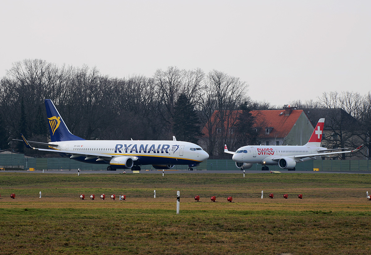Ryanair(Malta Air), Boeing B 737-8AS, 9H-QAG, Swiss, Airbus A 220-100, HB-JBC, TXL, 15.02.2020