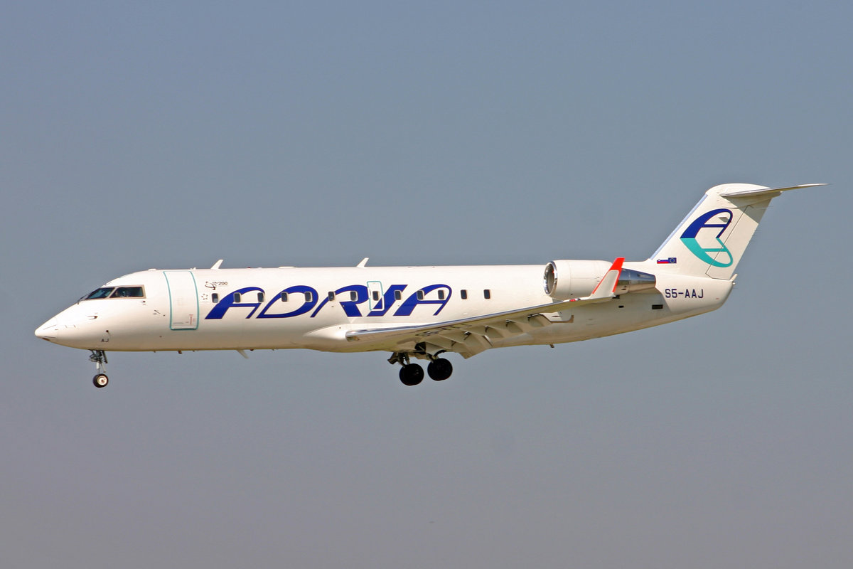 Adria Airways, S5-AAJ, Bombardier CRJ-200LR, msn: 8010, 02.Juni 2005, ZRH Zürich, Switzerland.