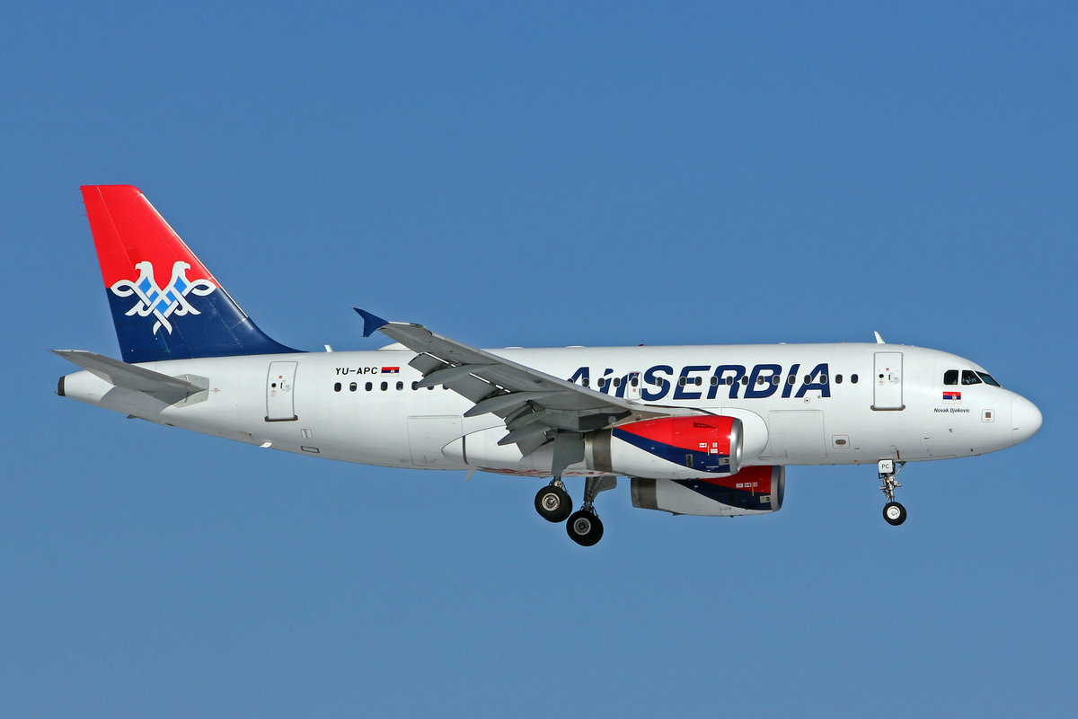 Air Serbia, YU-APC, Airbus A319-131, msn: 2621, "Novak Djokovic", 13.Februar 2021, ZRH Zürich, Switzerland.