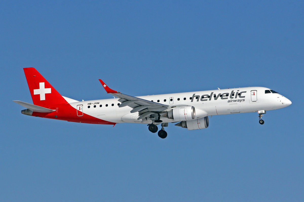 Helvetic Airways, HB-JVM, Embraer ERJ-190LR, msn: 19000349, 13.Februar 2021, ZRH Zürich, Switzerland.