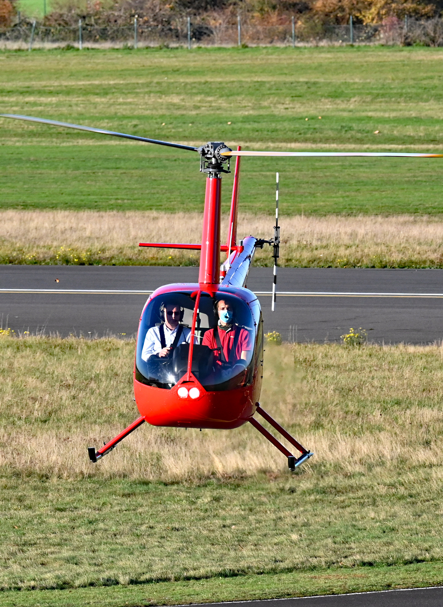R 44 Raven I, D-HALL, Fa. Air Lloyd bei Hoverübungen am Flugplatz Bonn-Hangelar - 18.11.2020