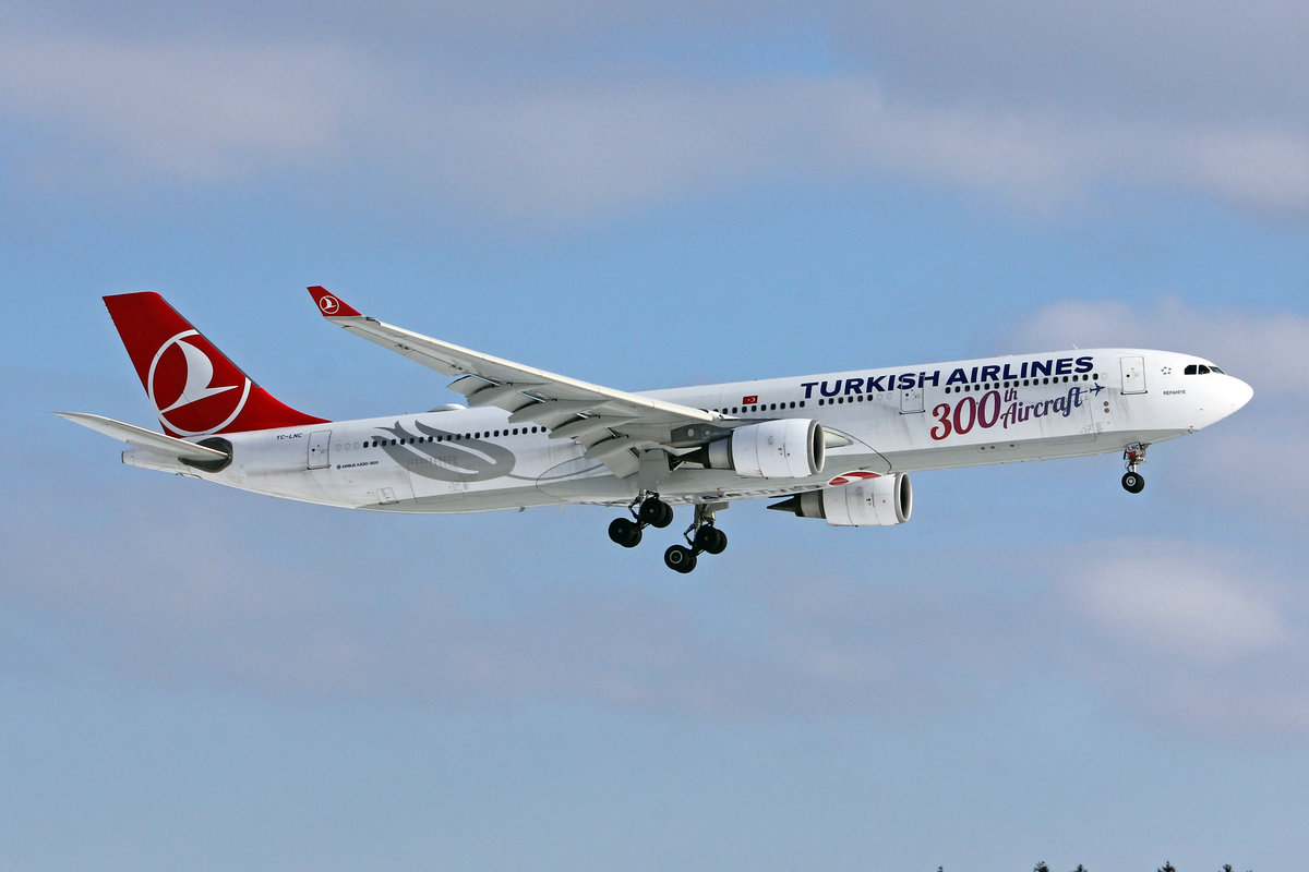Turkish Airlines, TC-LNC, Airbus A330-303, msn: 1696, "Refahiye", 300th Aircraft Sticker, 13.Februar 2021, ZRH Zürich, Switzerland.