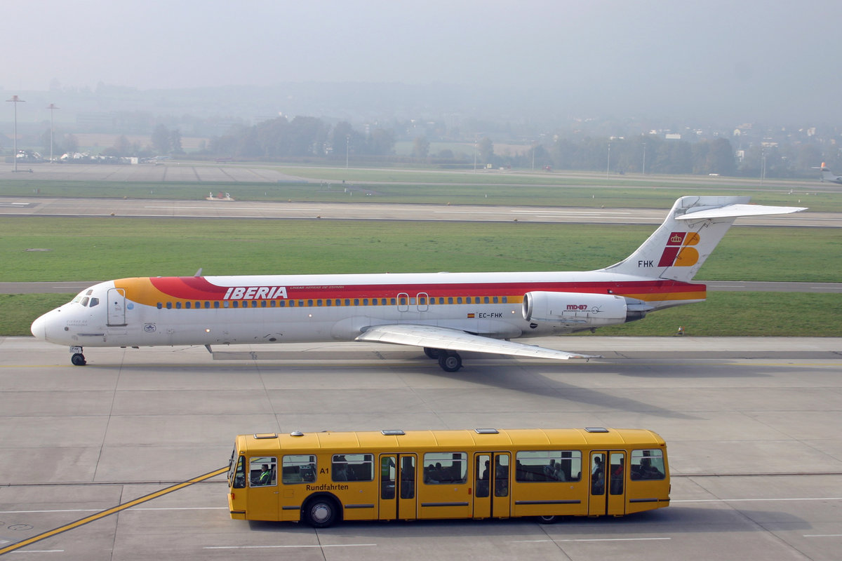 Iberia, EC-FHK, McDonnell Douglas MD-87, msn: 53213/1879, "Ciudad de Tarragona", 30.Oktober 2005, ZRH Zürich, Switzerland.