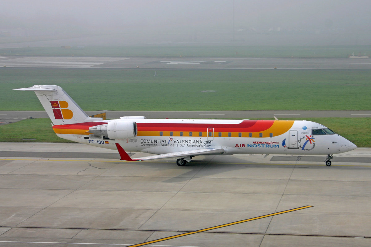 Iberia Regional (Operated by Air Nostrum), EC-ILF Bombardier CRJ-200ER, msn: 7746, "Tomás Yepes", 02.Juni 2005, ZRH Zürich, Switzerland.