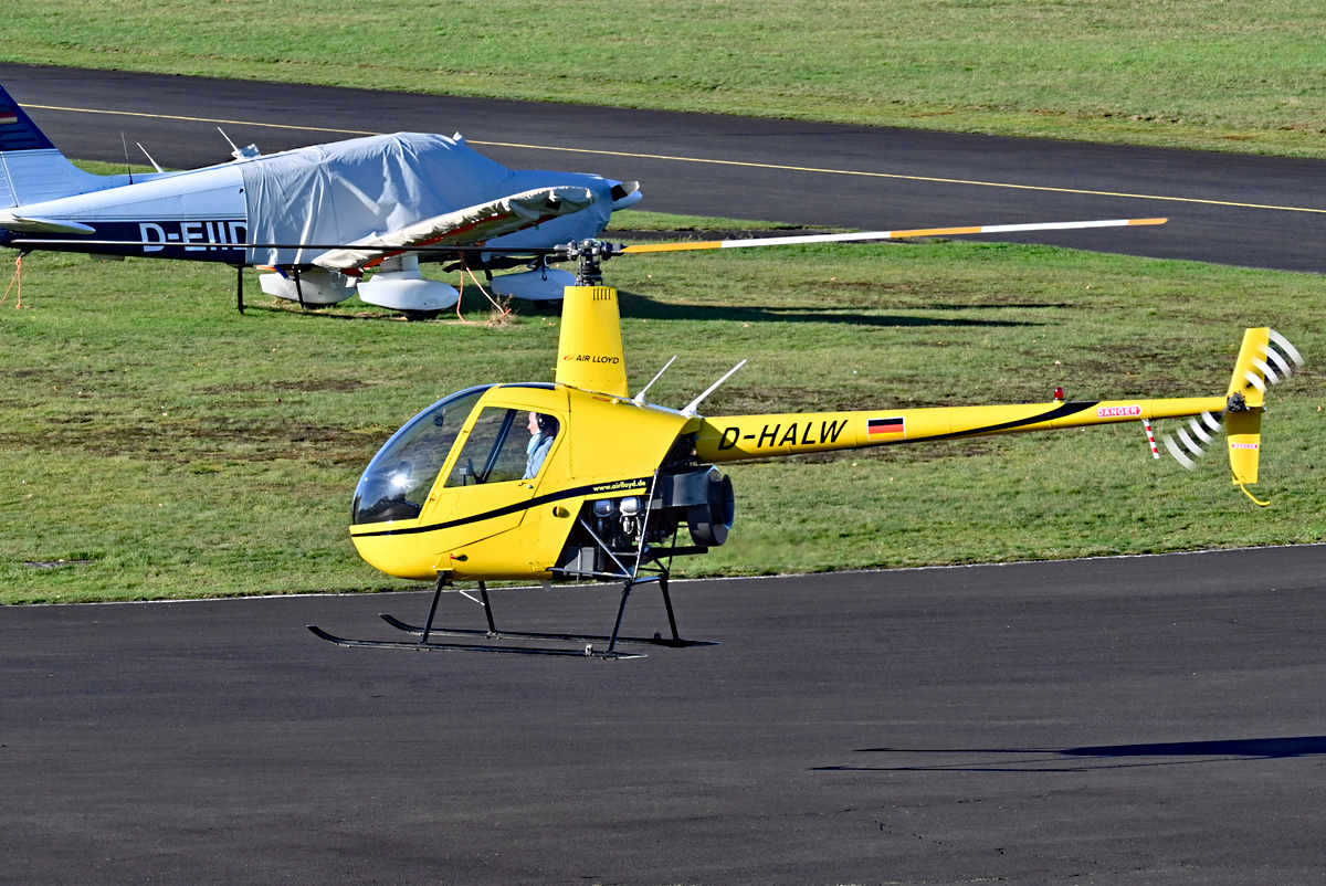 R 22, D-HALW Fa. AirLloyd hovert zur AirLloyd-Halle in Bonn-Hangelar - 18.11.2020