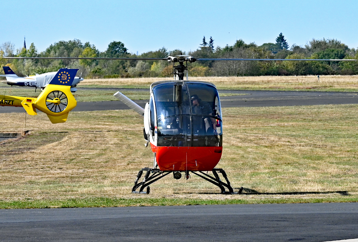 R 44 Raven II, D-HKAA von REVIER HELI, startet zu einem Rundflug in EDKB - 19.09.2020